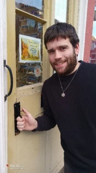 I am walking down Bridge Street in Morpeth to meet Brad, the young man in Mackay’s stationery shop. Here is, looking out for me. He opens the door with its clickety latch.